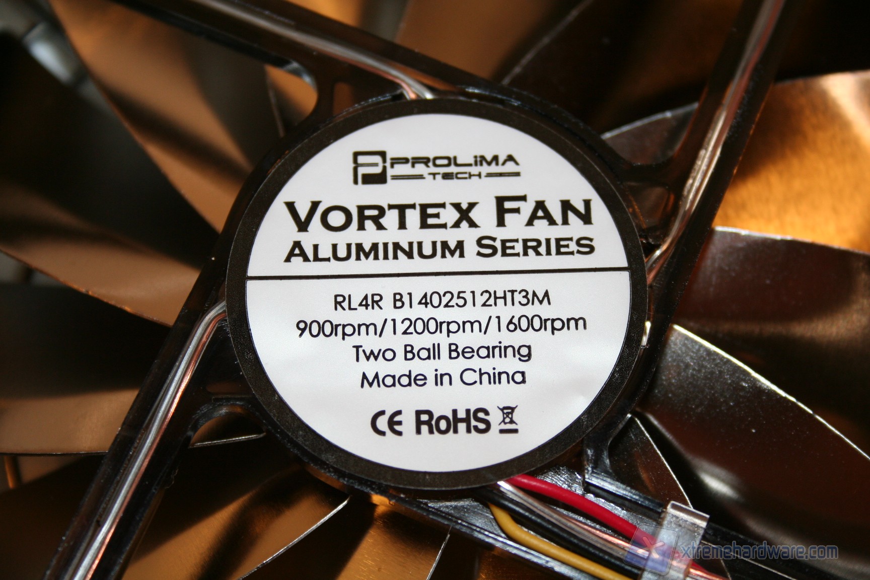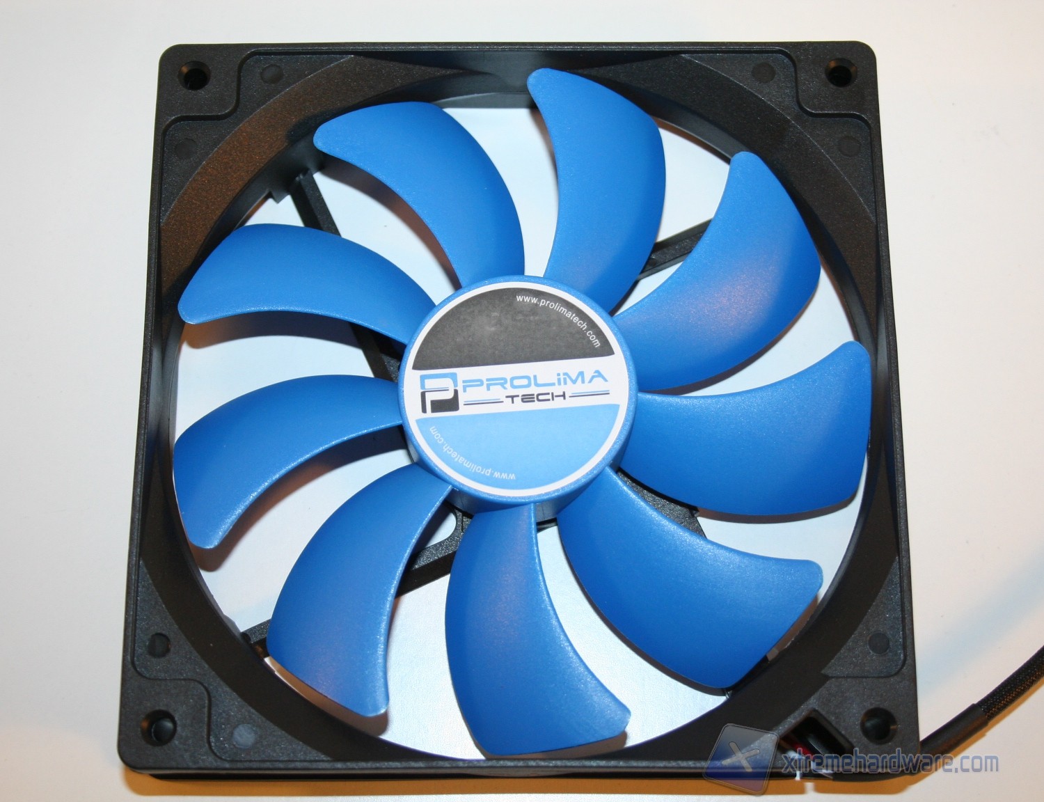 Abbiamo già recensito la nuova serie Prolimatech, che consiste in tre ventole da 120mm e ben 4 da 140mm, entrambe sempre con 25mm di spessore; la linea produttiva “Vortex” è interessante in quanto è finalizzata ad un pubblico molto esigente in termini prestazionali, non a caso il valore di targa della serie da 120mm è ben 72.67CFM, al massimo del regime di rotazione. Per quanto riguarda le 140mm invece il valore sale ad 87CFM.